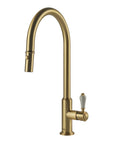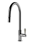 Introducing the Ludlow pull out mixer tap: an elegant blend of English design and Italian craftsmanship. Inspired by Victorian style, it adds a timeless charm to your kitchen. Made from lead-free brass for durability and safety, it features a stylish white lever handle or choose the metal handle finish to match the tapware body. Available in brushed brass, brushed nickel, chrome, and english bronze, you can easily find the perfect finish to suit your space. A The pull-out spray offers extra flexibility, making it easy to reach into the corners of even the largest of sinks.